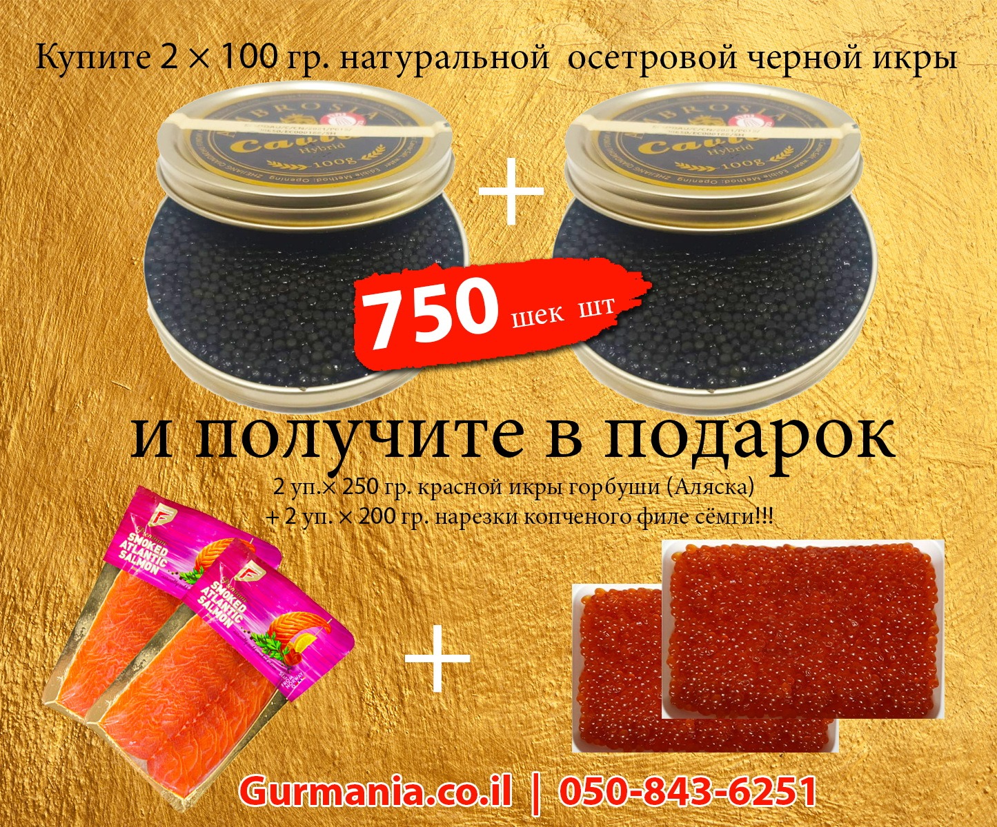 מתנה – 2 יח קוויאר אדום 250 גרם + 2 יח סלמון מעושן פרוס 200 גרם!